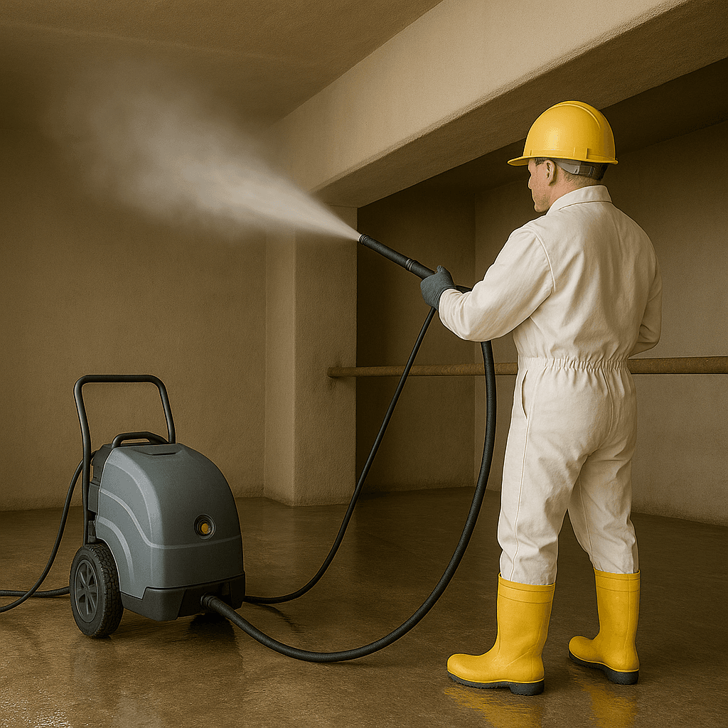 Bei der industriellen Hochdruckreinigung werden Oberflächen mit Wasser unter sehr hohem Druck gereinigt, um hartnäckige Ablagerungen, Verkrustungen und vor allem gesundheitsgefährdende Biofilme rückstandslos zu entfernen. Diese Methode ist besonders effektiv, da sie ohne chemische Zusätze auskommt und selbst schwer zugängliche Stellen gründlich säubert. Für den Kunden bedeutet das eine hygienisch saubere Oberfläche, eine verbesserte Anlageneffizienz sowie die Minimierung mikrobiologischer Risiken – ein entscheidender Vorteil insbesondere in sensiblen Bereichen wie der Lebensmittel- oder Wasserwirtschaft.